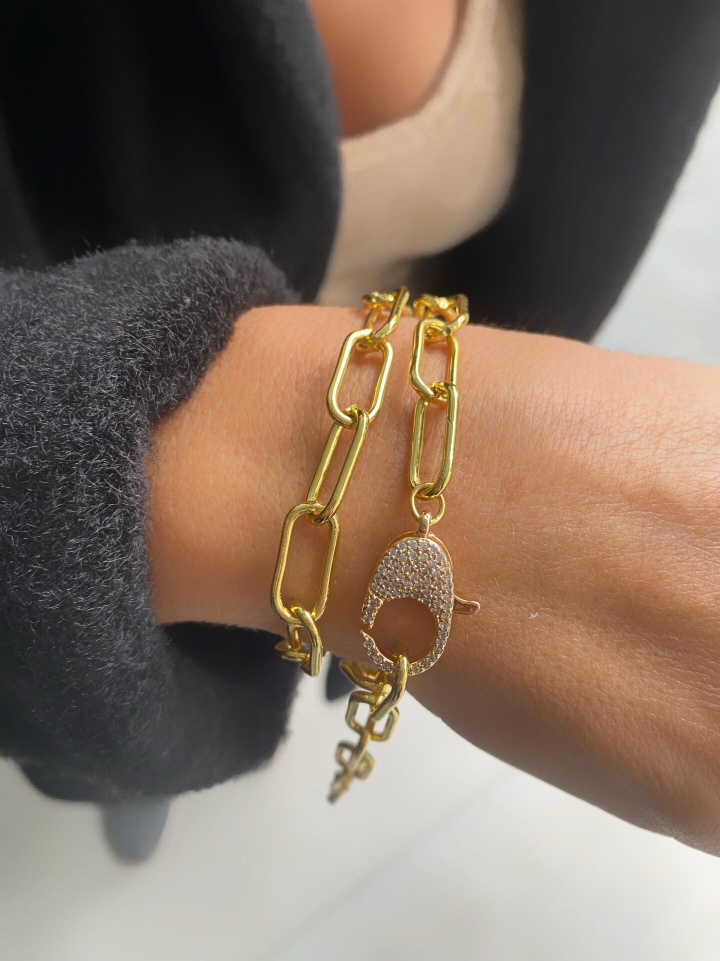 Collar laminado en oro 18k. Hipoalergénico. Dije gancho con micro zirconias.Cadena eslabón grande, largo de cadena 40c m.