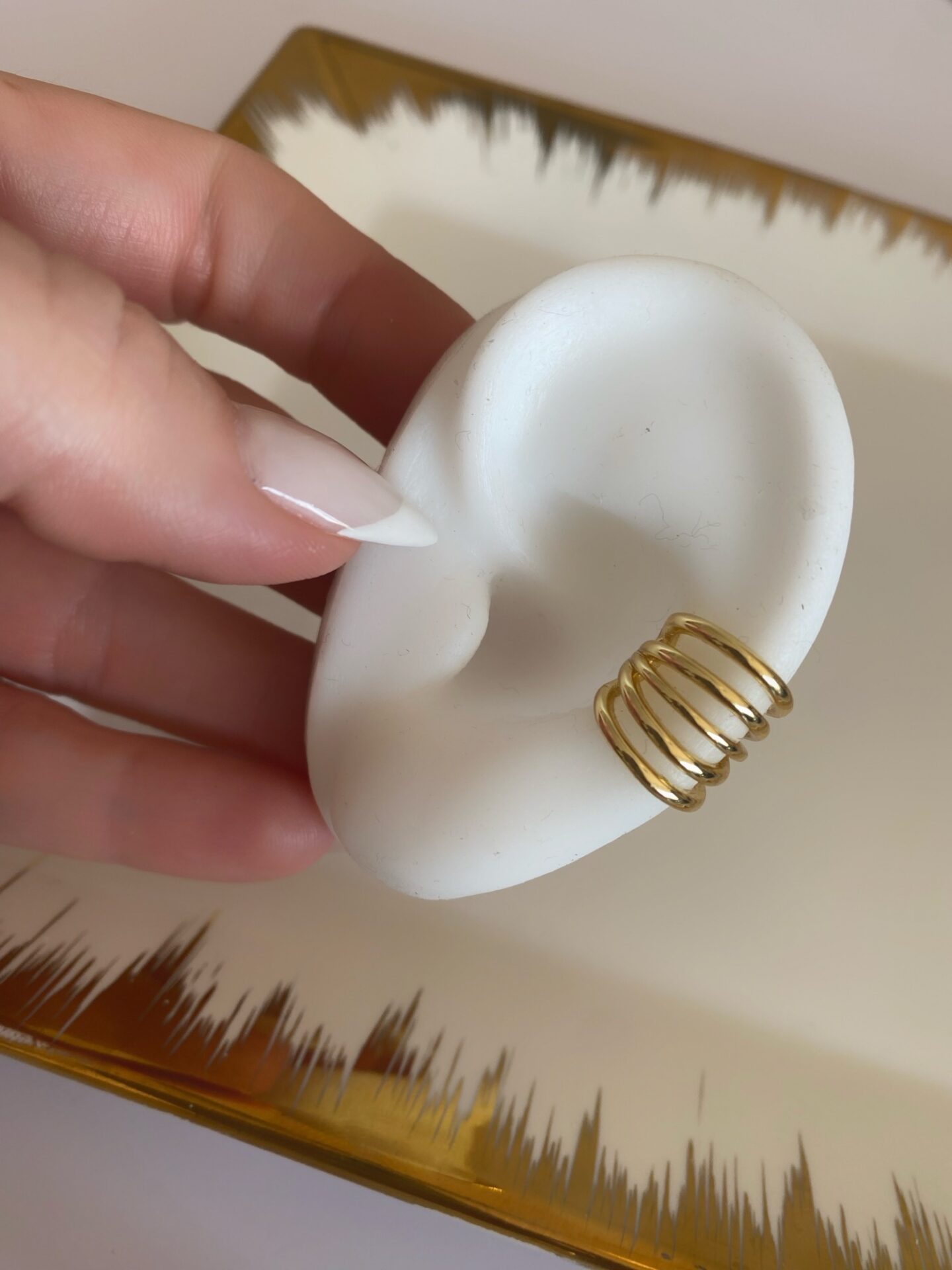 Aro (unidad) laminado en oro 18k. Se coloca sobre la parte superior de la oreja. No requiere perforación.